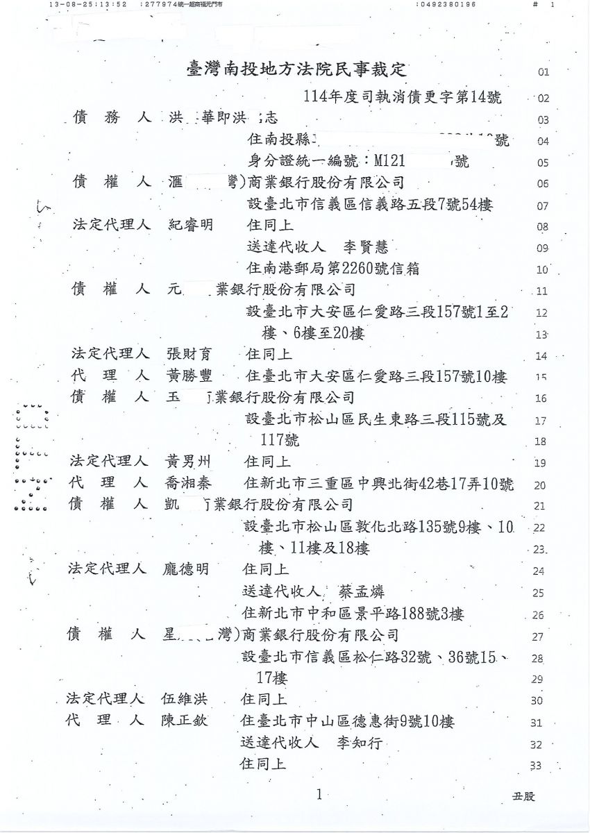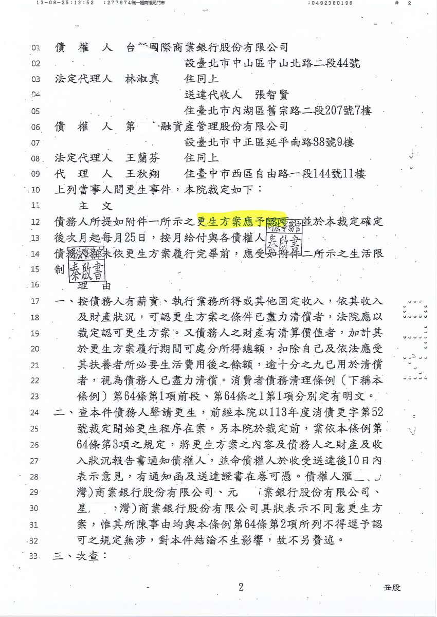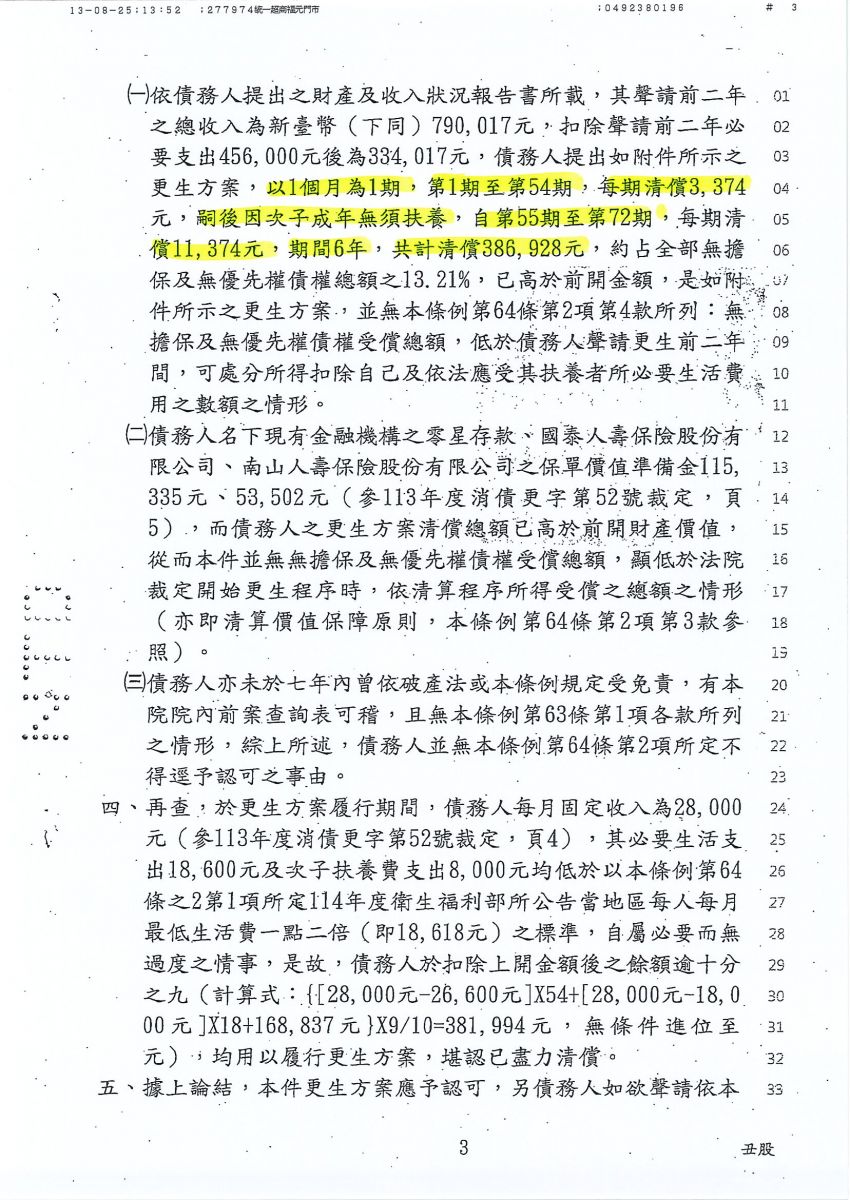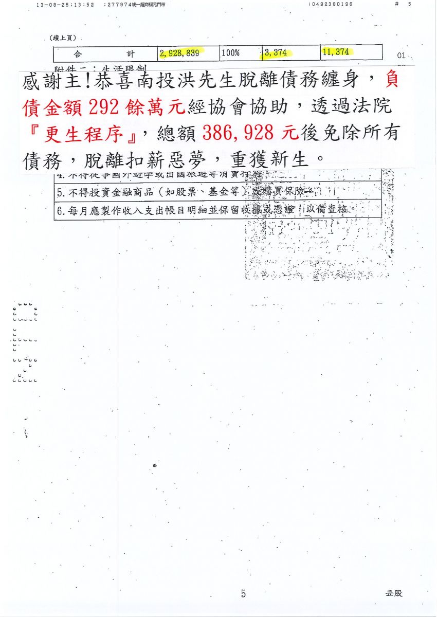 狂賀本會會員 洪先生 經法院裁定更生方案認可確定,以386,928元
