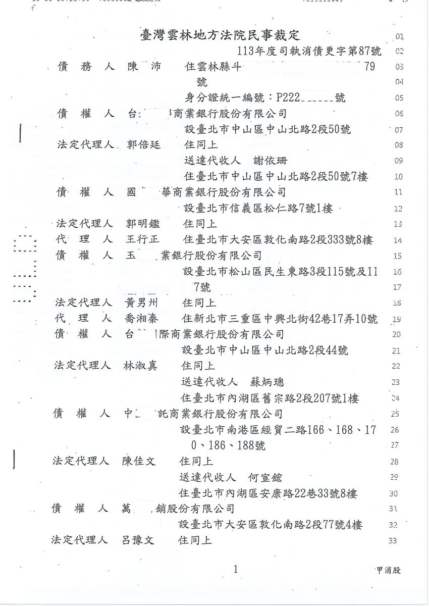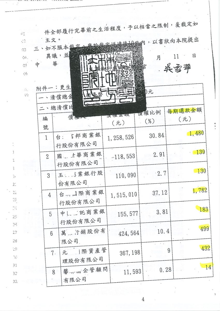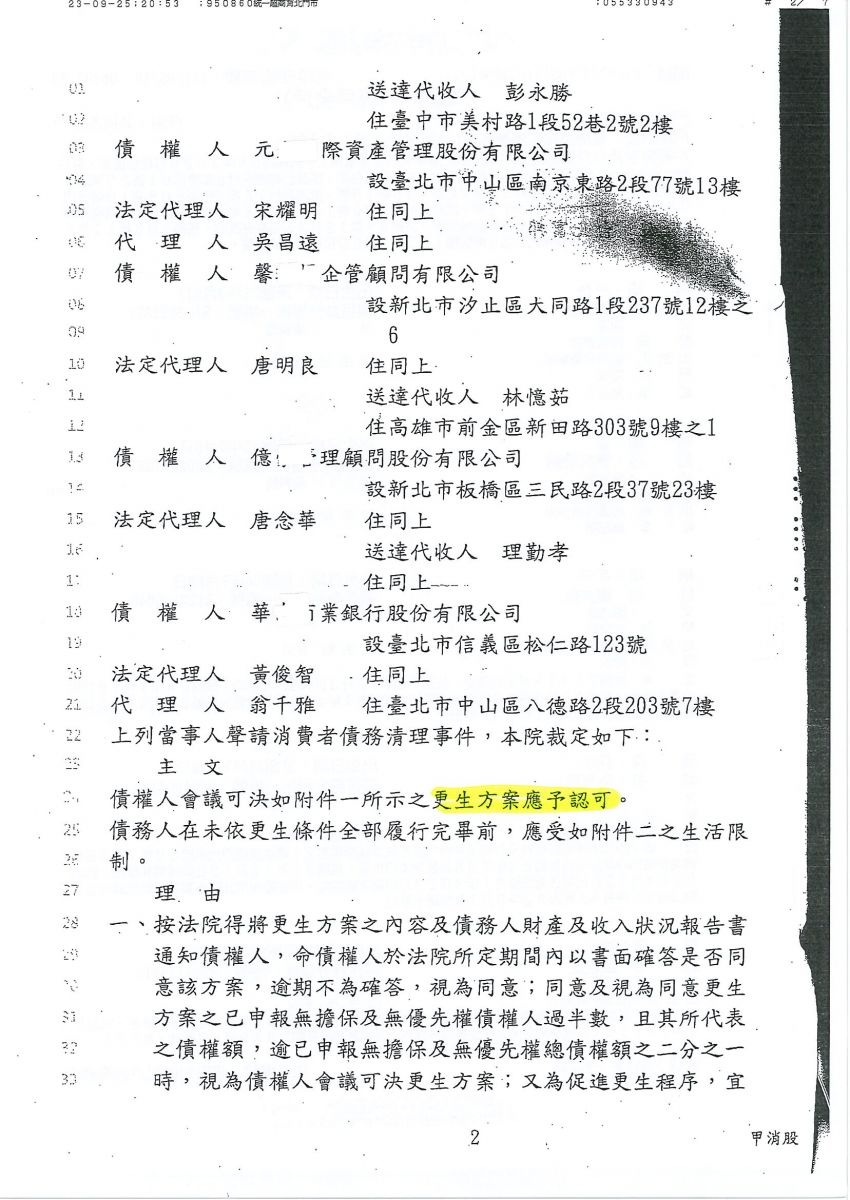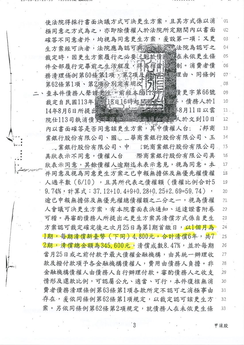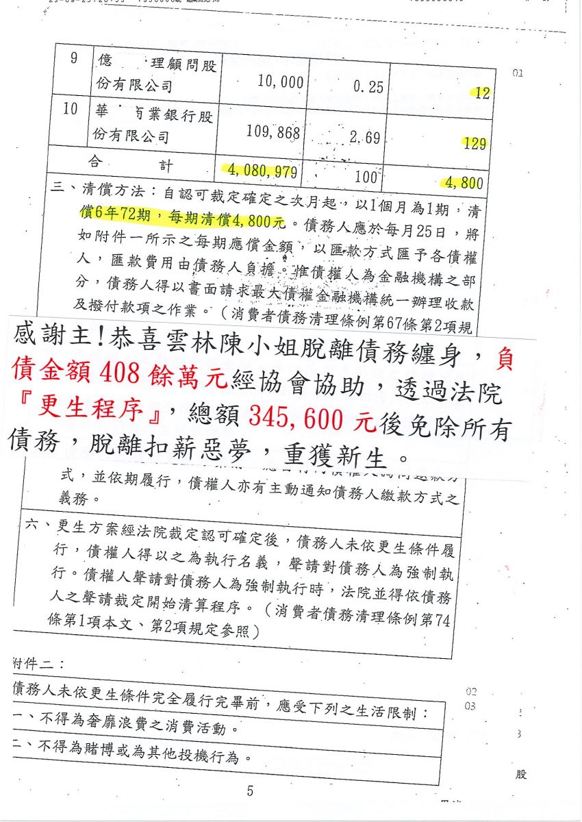 狂賀本會會員 陳小姐 經法院裁定更生方案認可確定,以345,600元