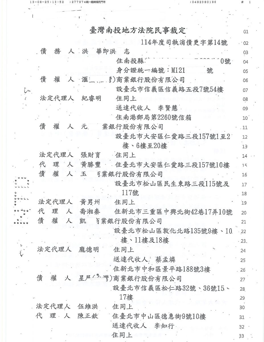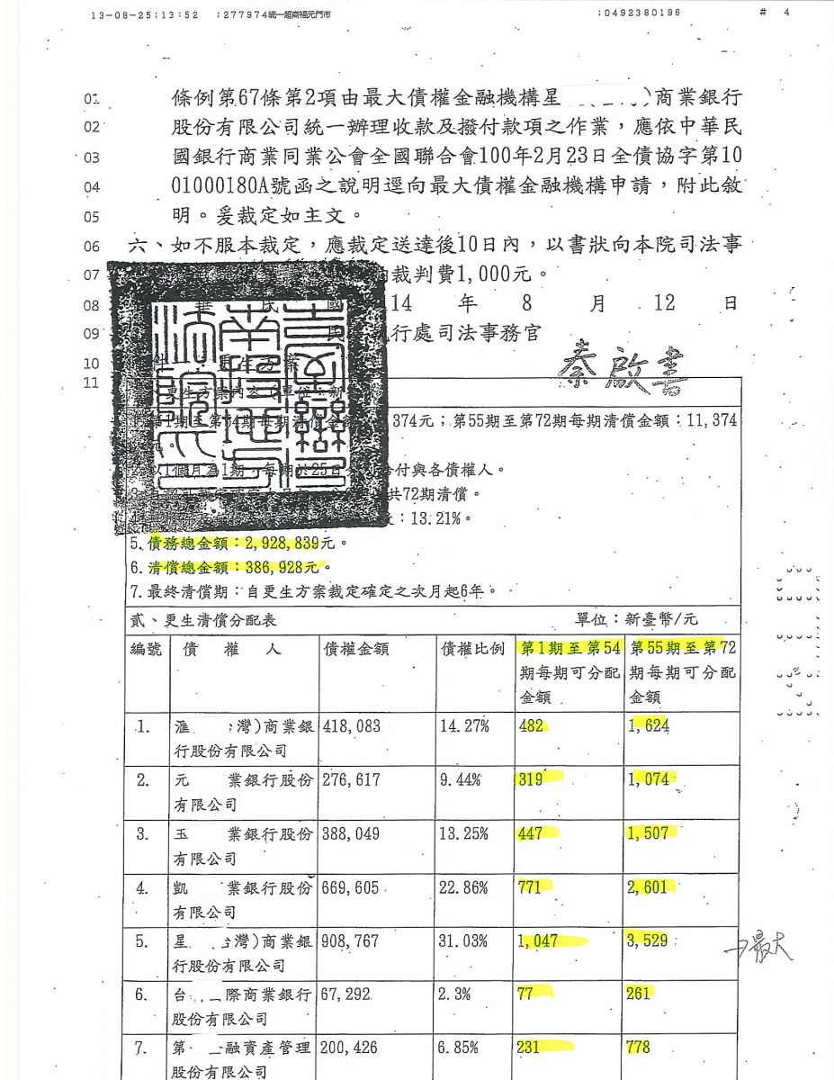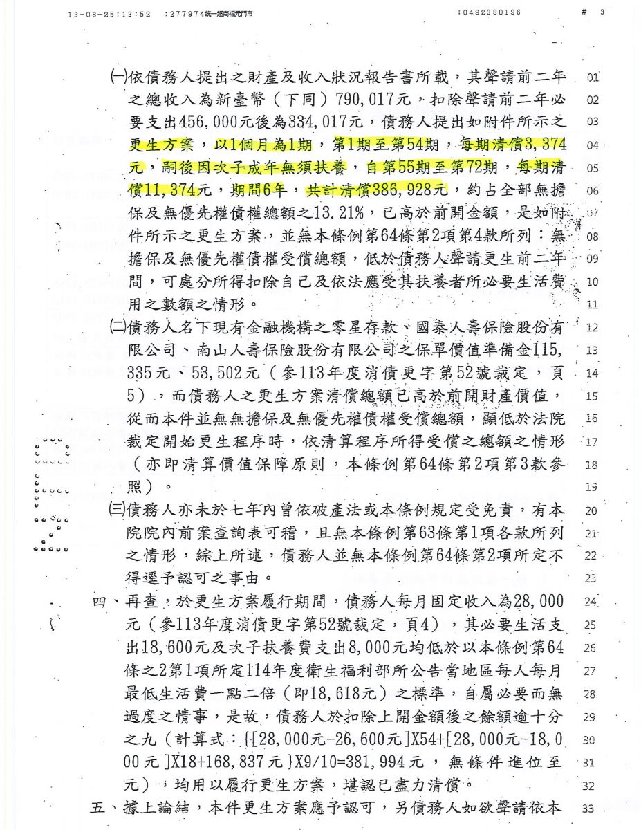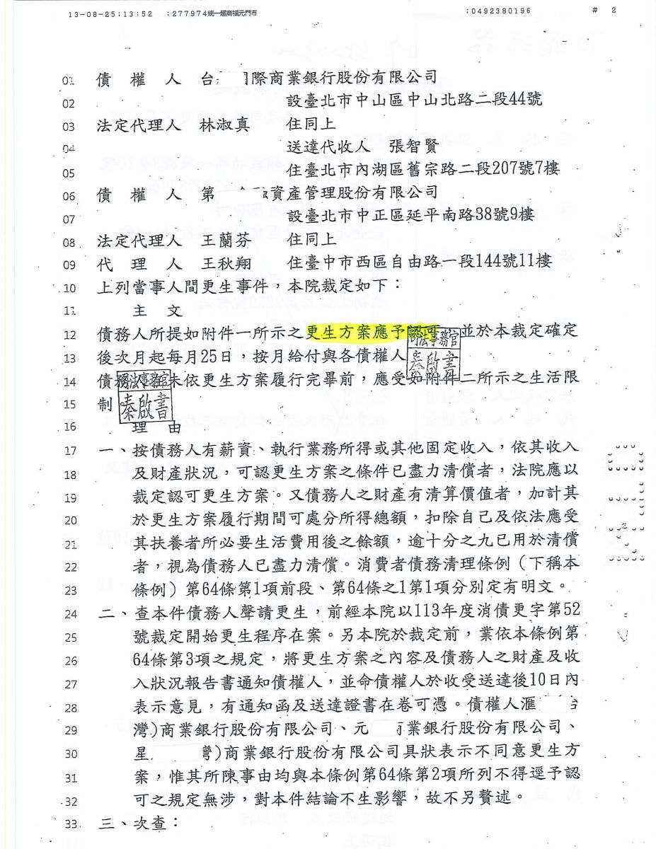 狂賀本會會員 洪先生 經法院裁定更生方案認可確定,以386,928元