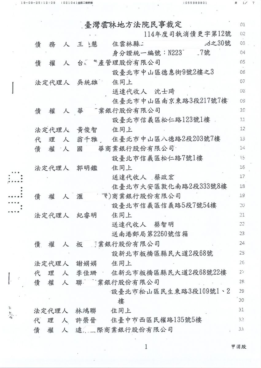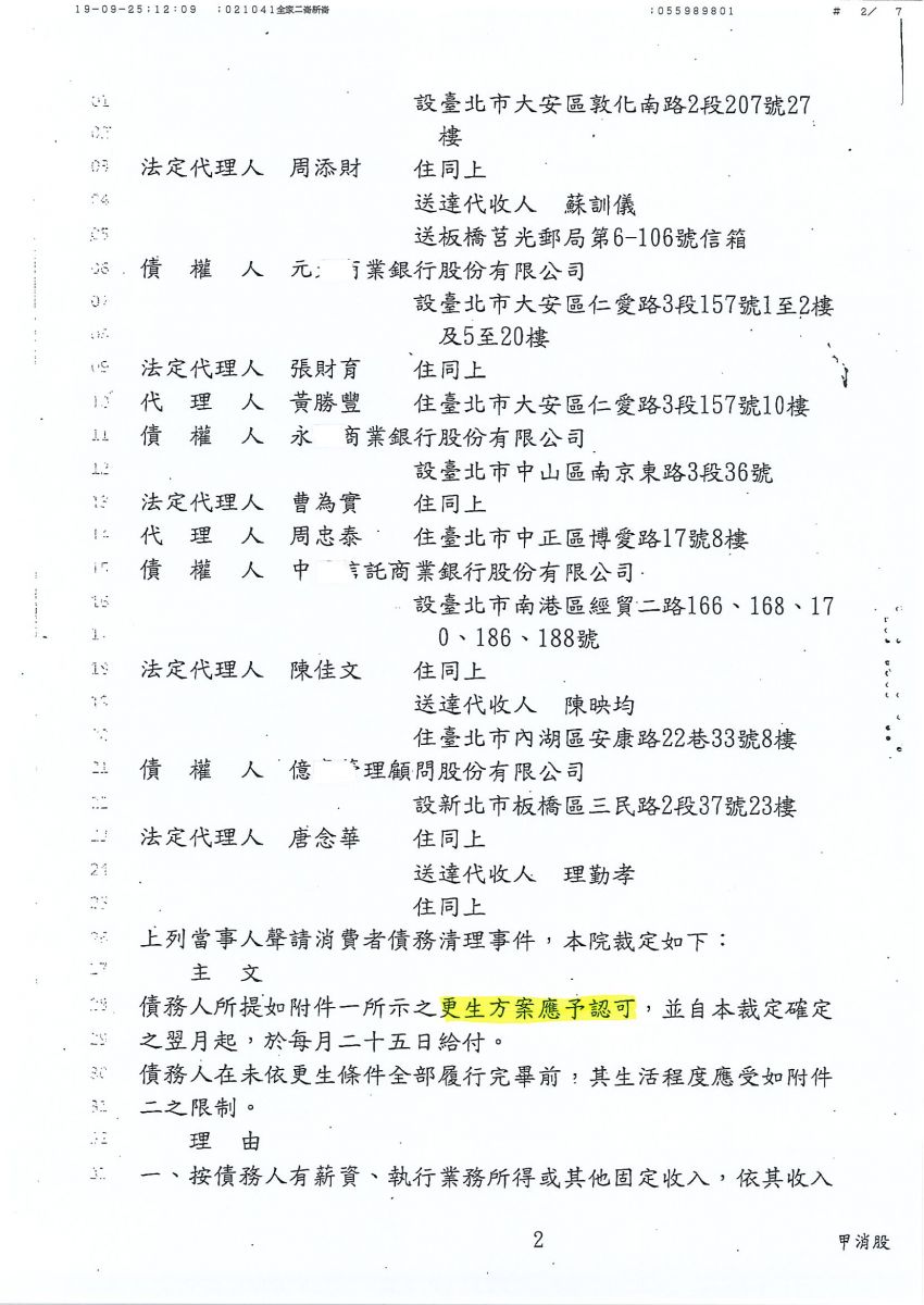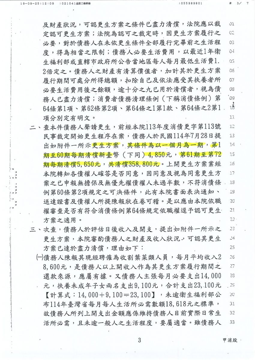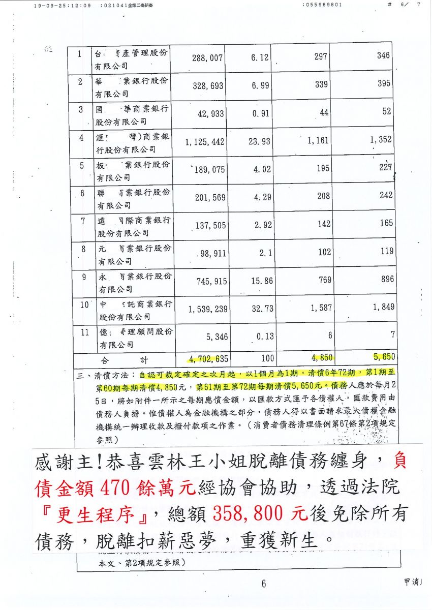 狂賀本會會員 王小姐 經法院裁定更生方案認可確定,以358,800元