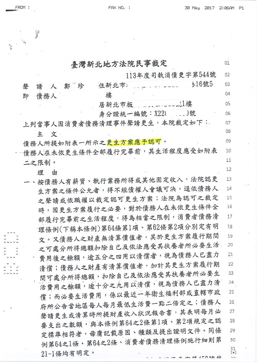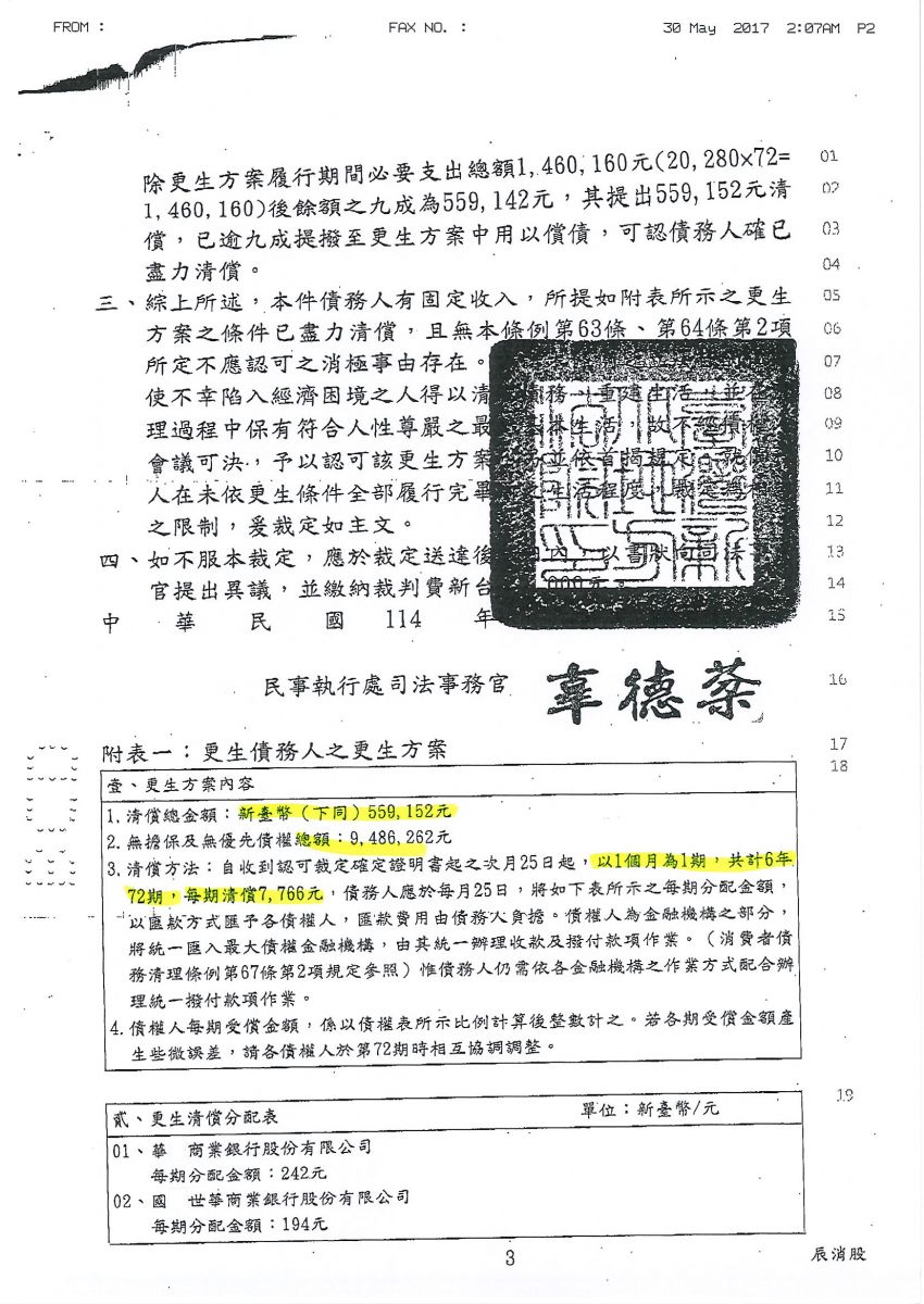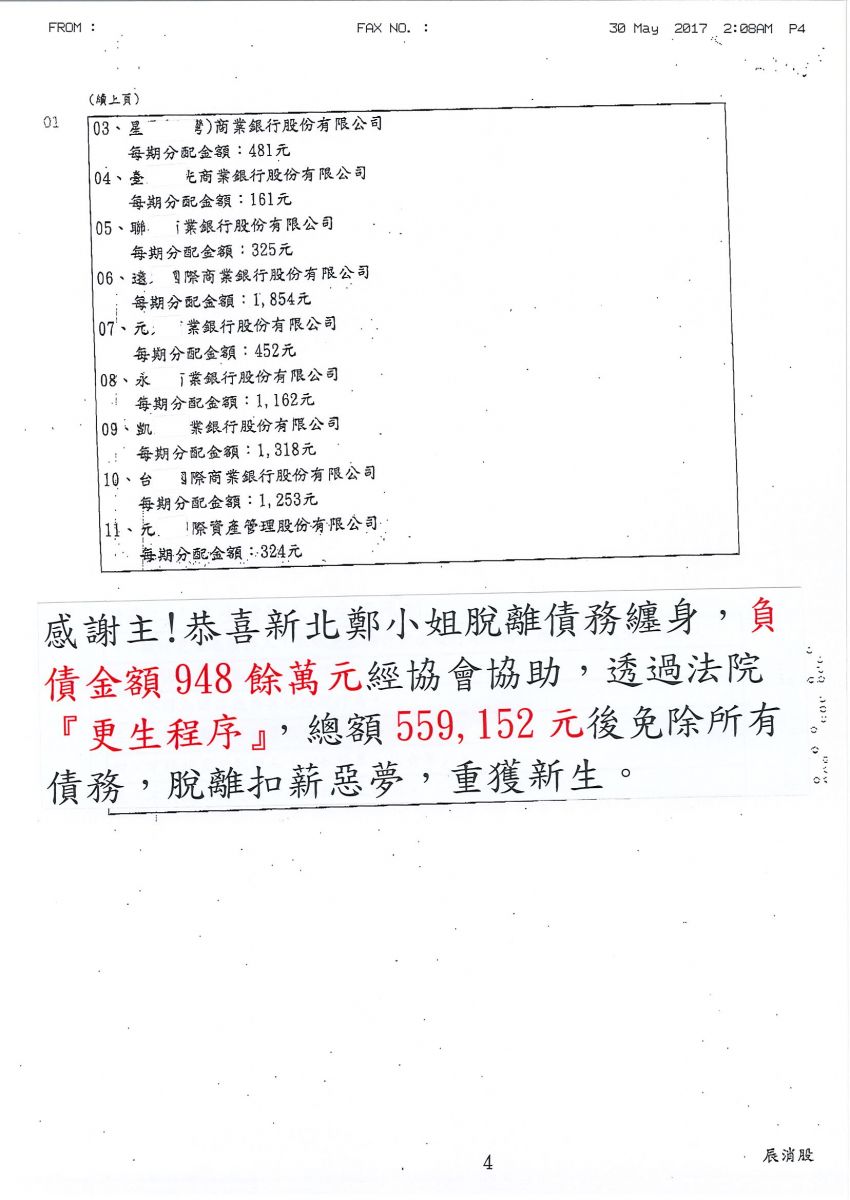 狂賀本會會員 鄭小姐 經法院裁定更生方案認可確定,以559,152元