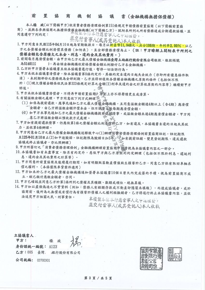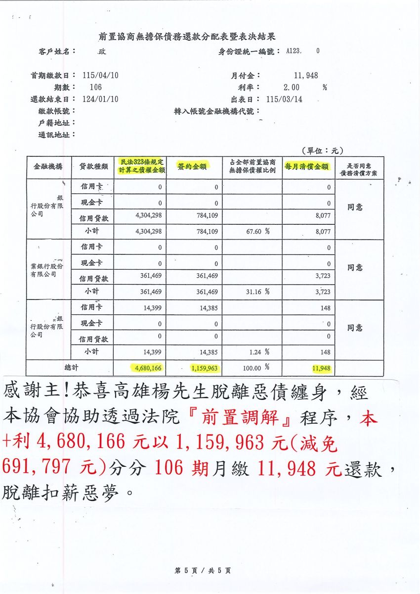 經協會協助後,經前置協商後核准!! 分106期,月繳11,984元,免除扣薪噩夢