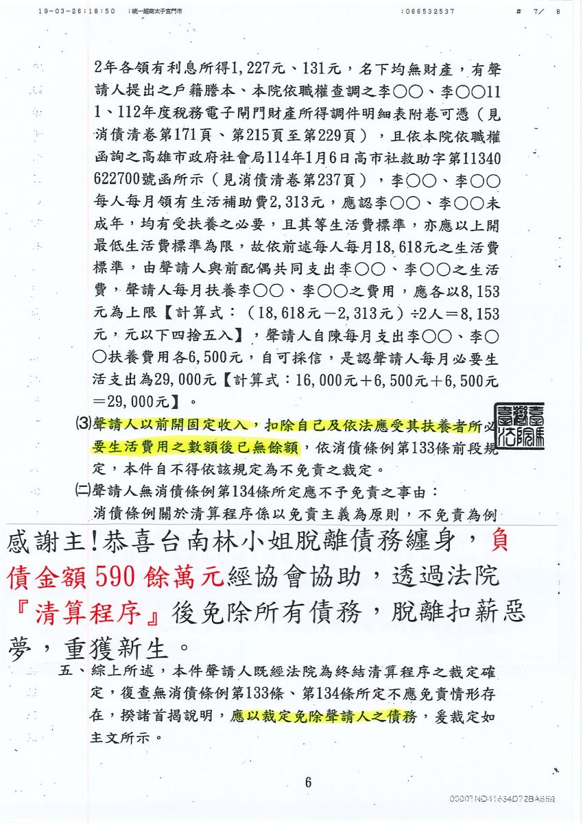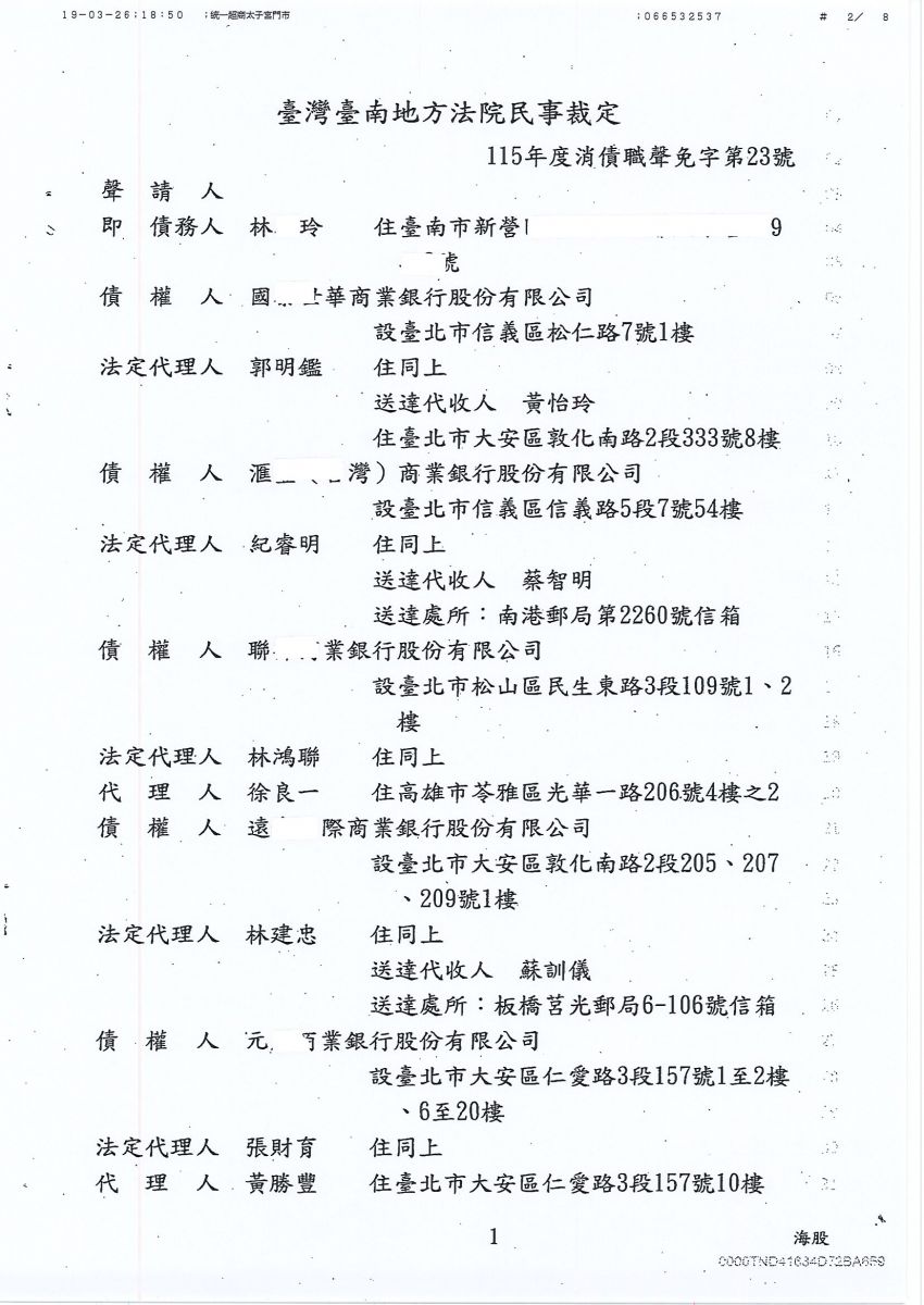 清算免責成功-台南地方法院-115年度消債職聲免字第23號