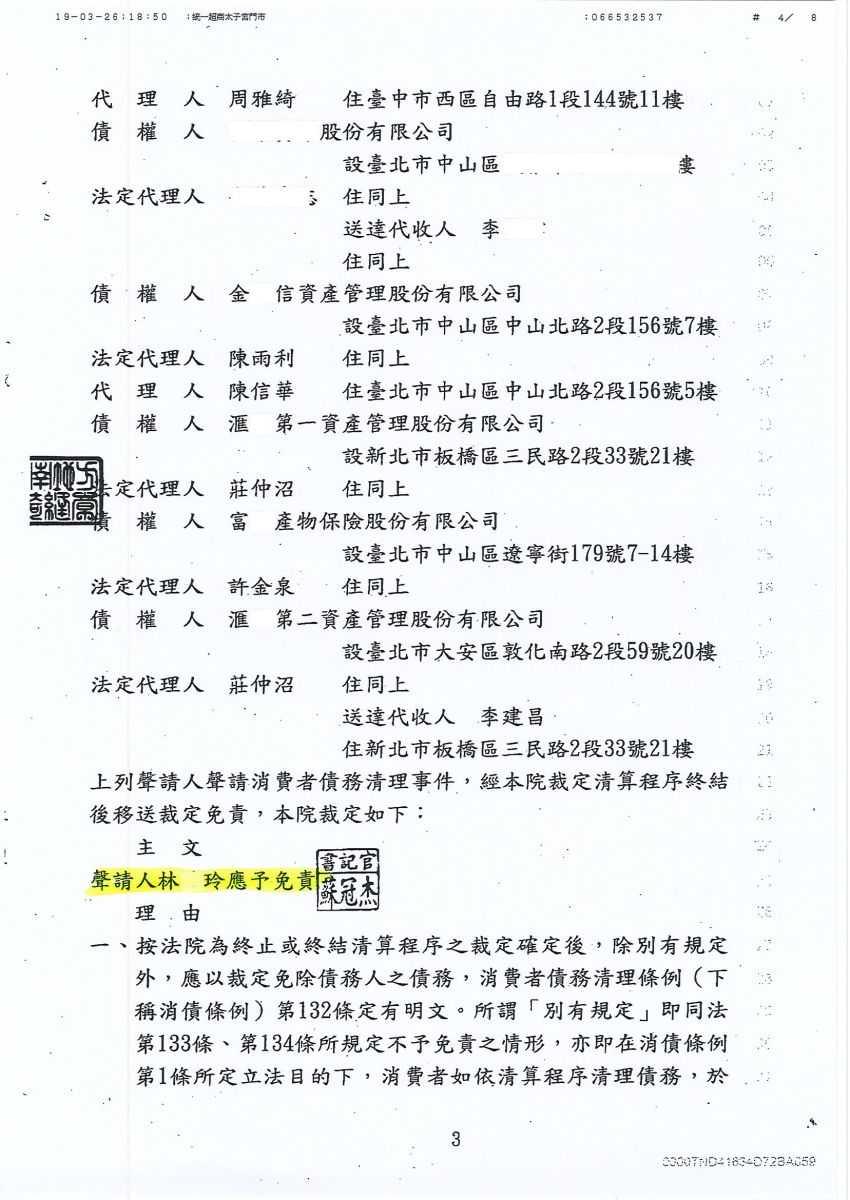 經法院裁定清算免責認可確定